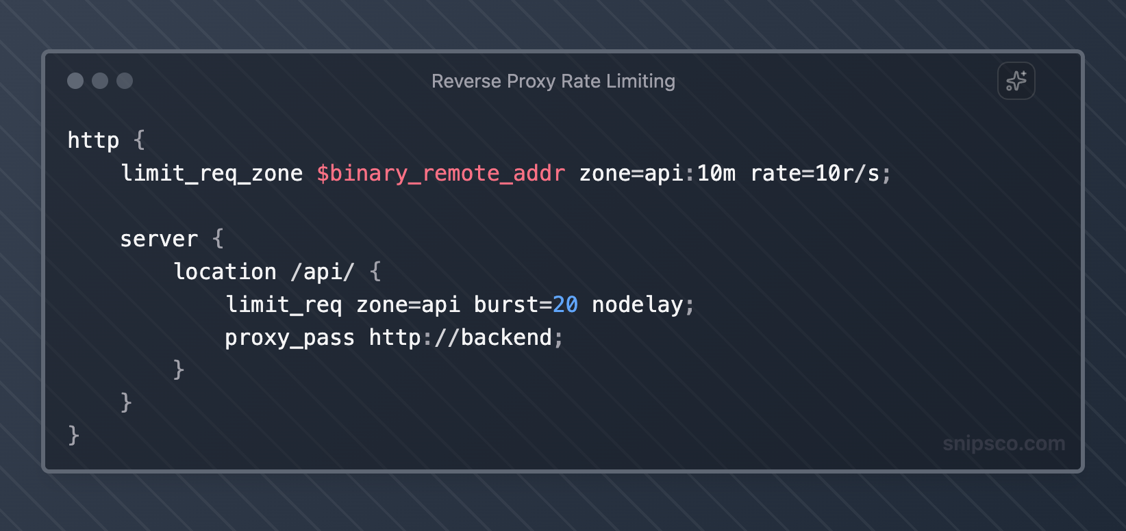 Use reverse proxies like Nginx, HAProxy, or cloud load balancers to handle rate limiting. This offloads processing from your application servers and provides centralized control.