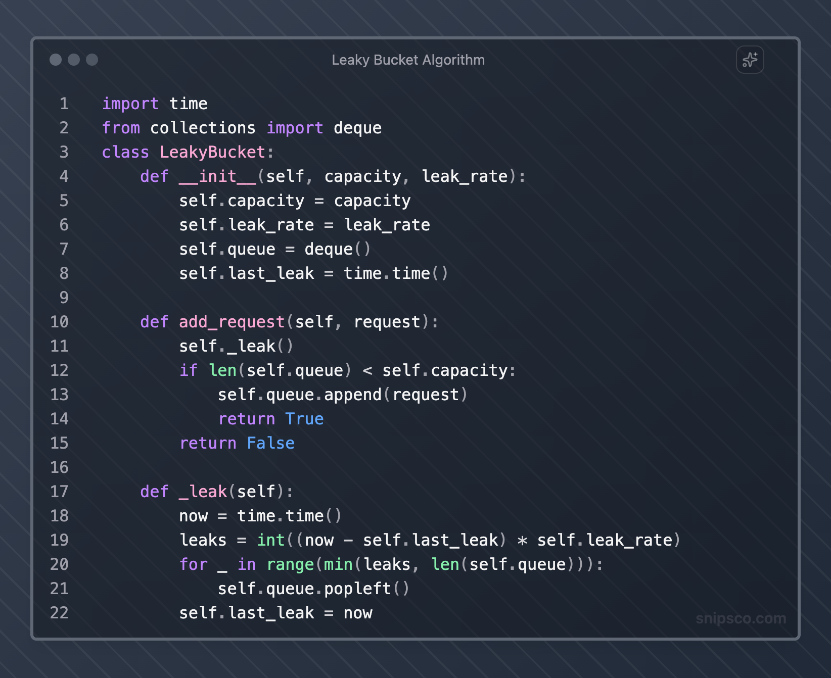 This approach provides smooth request processing but may not handle burst traffic as flexibly as token bucket implementations.