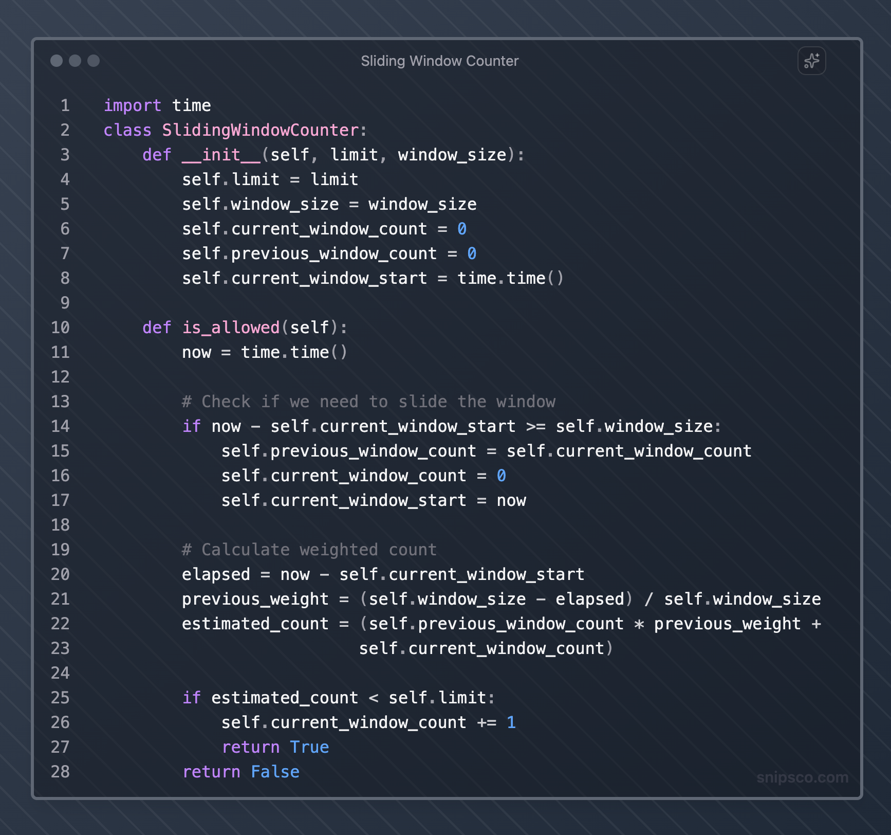 The sliding window counter combines the simplicity of a fixed window with the accuracy of a sliding window.