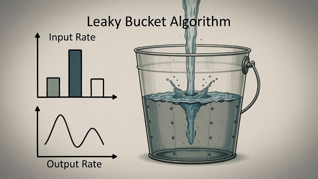 Requests enter the bucket and get processed at a steady pace, with overflow requests either rejected or queued.
